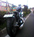 ソリッド黒にドラッグバー、そしてハーフムーンのリアフェンダーは、 吊るしの状態で満足のいくデザイン。